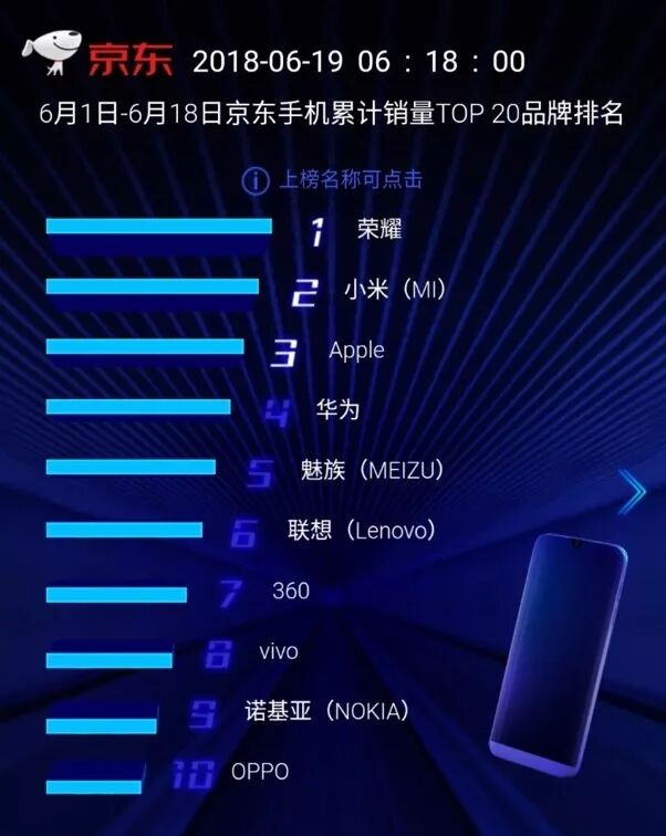 https://mmbiz.qpic.cn/mmbiz_jpg/gL0GByFsp5vP2iaMP0WJlX9Hp5xFBHfggqVU1Bls96nmvJP5wvQNFvfJumrkRWxzevnyr2uPPsL2ryYZBPcZwjg/640?wx_fmt=jpeg但是在6月19日,京东又发布了一份618活动手机销量排行榜。这次的排名与活动当晚给出的有一些不同。其他手机排名没有发生变化,唯一变化的是冠亚军的位置调换。对此,可能很多人和读者一样一脸懵逼,这是怎么回事?难不成昨天我们看到了一个假排名?当时笔者第一反应便是回头去查看京东618当晚给出的排名,没错!确实是两个不同的排行榜。