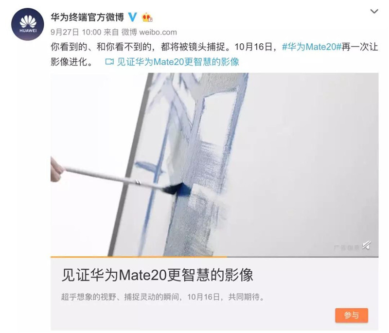 https://mmbiz.qpic.cn/mmbiz_png/gL0GByFsp5votX5PU0yapa3t8RRxty6w3A2gCzz4JxyKTct06rZmiaAGgAVvpSAheiaWRjcgK6jfnl5icoymsfcRg/640?wx_fmt=png笔者相信,Mate20不管是性能还是外观都将为消费者带来更极致的体验。让消费者左手娱乐,右手工作,在工作与生活中享受无穷乐趣;左手技术,右手艺术,追求科技与美学的极致体验;左手过去,右手未来,体验承袭与创新的别样感受。Mate20是值得所有消费者去等待的跨时代产品。我们可以说出,智慧手机Mate20,10月16日伦敦见!