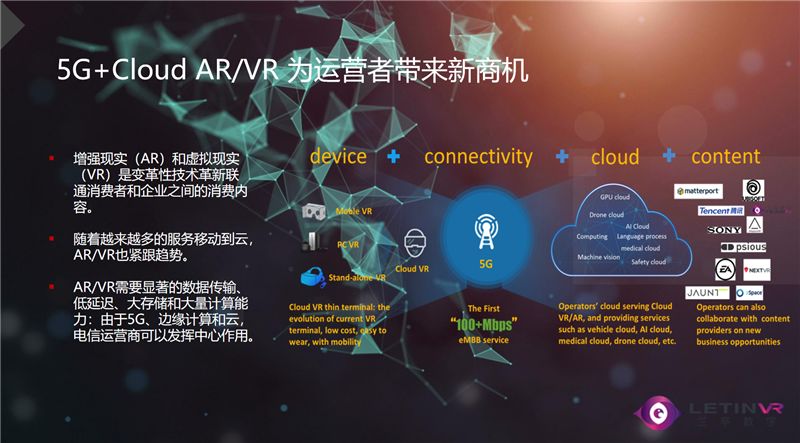 但是VR视频规模快速的发展,需要强大的5G技术支撑。5G网络具有的大带宽、低时延特性,与VR视频所需求的网络条件天然契合,两者结合将让云VR成为可能,可以加速VR视频的普及。