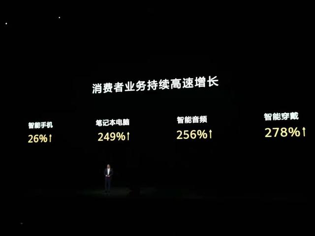 9月26日,华为消费者业务CEO余承东表示,在困难时期,华为消费者业务依然保持持续高速增长,截至目前,华为智能手机发货量实现26%增长增长,笔记本实现249%增长,智能音频实现256%增长,智能穿戴实现278%增长。