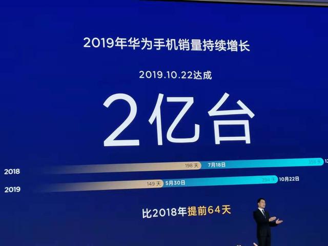 10月23日,华为消费者业务手机产品线总裁何刚表示,尽管面临挑战,但截至10月22日,华为2019年手机发货已经超过2亿台,比去年提前64天实现。