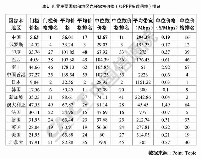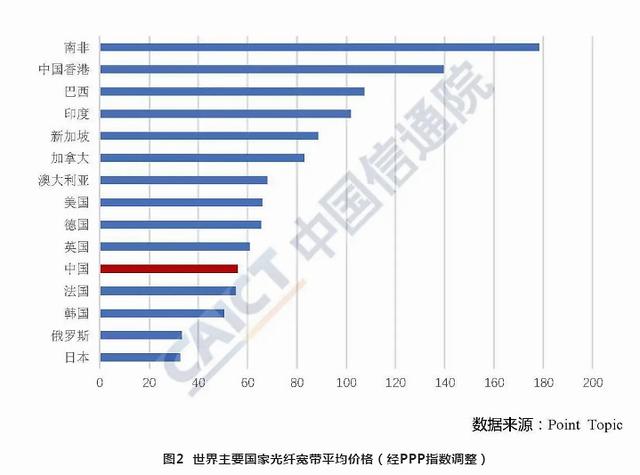 [2] 目前,国际主要宽带类型包括有线宽带、铜缆宽带和光纤宽带。随着我国深入开展提速降费,我国行政村光纤通达率已超过98%。因此,国际调查中,我国只有光纤宽带产品价格。