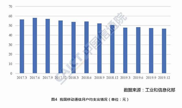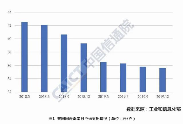 2019年第四季度,我国固定宽带月户均支出为35.6元,同比下降9.5%。