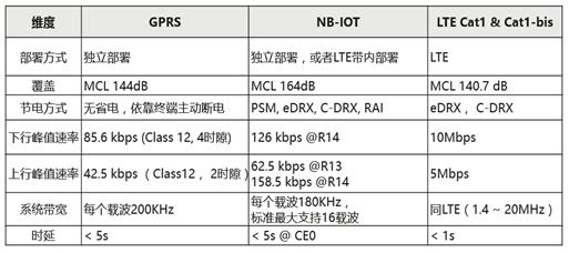 图注:2G、NB-IoT、Cat.1技术直观的对比