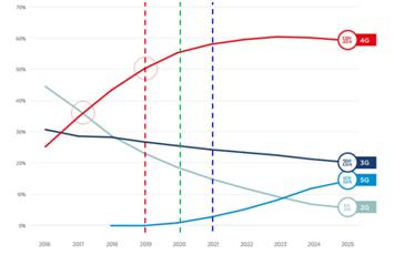 据GSMA估计,2019年LTE基站数量为519万站,LTE的用户承载占比在2019年为50%。我们做了一个简单的测算,在用户侧,依据GSMA的数据,到2020年底,预计LTE用户数承载占比将增加5%。在基站侧,如果2019年完成部署的13万5G基站也同步开通LTE的话,相较于LTE站点数新增2.5%。