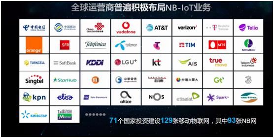 截至目前,全球有71个国家投资建设了129张移动物联网,其中NB-IoT网络达到93张。
