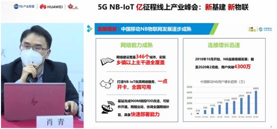 肖青介绍,在网络能力方面,中国移动已经达到基本成熟,实现全国346个城市NB-IoT的主要覆盖(实现乡镇以上主干道覆盖);打造NB-IoT优质网络服务,一点开卡,全国可用;基站完成900MHz频段FDD改造,可软开通;网随业动,协调全国网络补盲,具备快速部署能力。