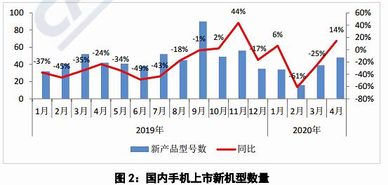 从发布的新机型数量来看,4月国内手机上市新机型 48 款,同比增长 14.3%。