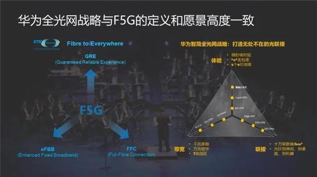 在人类迈向万物互联的智能时代道路上,炙手可热的5G是前进的“一条腿”,而默默无闻的F5G是“另一条腿”。什么是F5G?F5G是第五代光纤宽带技术,属于有40年历史的固定网络领域,包括1000M宽带接入这样的业务。
