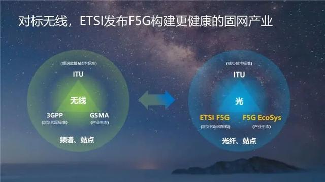 但与F5G不同,5G从过去多个标准,一步步走向统一。比如3G时代有3个标准,4G时代有2G标准,到了5G时代变成1个标准。但F5G过去40年一直比较分裂,各个固定网络领域的标准组织缺乏沟通。事实证明,统一的标准非常重要,5G因为标准统一,实现了比4G更快更好的产业发展。
