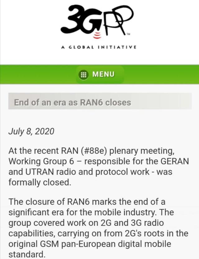 该工作组关闭,也意味着备受业界关注的2G/3G退网,从国际标准组织的标准开发层面,已无后路了,标志着移动产业一个时代的结束。
