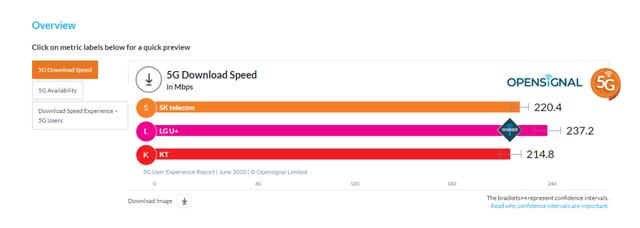 今年6月份,Opensignal发布了从2月1日至4月30日,在各种室内和室外地点对约218000台5G设备进行289万次测量结果。结果显示,LG U+ 5G网络速率达到220.4Mbps,在三大运营商中排名第一。