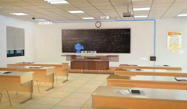 而新一代数字化教室终端丰富多样,包括了电视、广播、Wi-Fi、监控以及电子白板等,靠全光智能专线网络实现覆盖,还能支撑人脸识别、数字图书馆以及智能安防等多种应用。