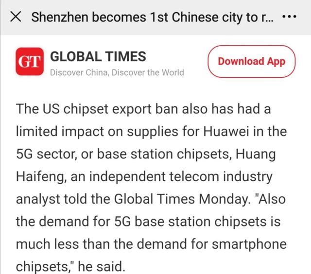 8月17日深圳宣布成为5G SA全覆盖城市,建成4.6万个5G基站。之后《环球时报》以及《环球时报》英文版与我交流了相关热点,记录如下。