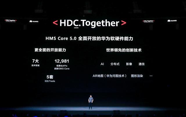 余承东在演讲中表示,华为HMS Core 5.0开放能力从14个Kit增长到56个kit,API数量则从885个跃升至12981个,覆盖7大领域,并拥有5套IDE/Tools。
