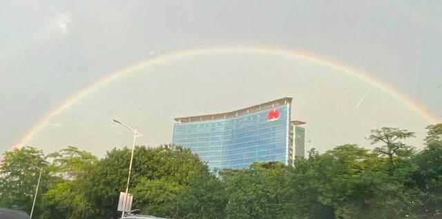 今天,一场暴风雨过后,华为及开发者大会现场上空,出现了这样一幕——风雨过后见彩虹。