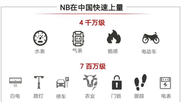 据悉,目前中国NB-IoT在水表、气表、烟感、电动车4个行业实现千万级连接应用;在白电、路灯、停车、农业、门锁等7个行业实现百万级连接应用。而多个新兴应用,支撑NB-IoT连接数快速增长。