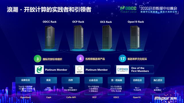 具体而言,在开放社区贡献方面,浪潮作为唯一一家同时加入ODCC、OCP和Open19三大开放计算组织的厂商,全面支持OCP、ODCC、Open19三大硬件开放标准,支持OpenStack、TensorFlow等开源软件,开发符合各类开放标准的计算方案,为行业客户提供领先的开放算力。