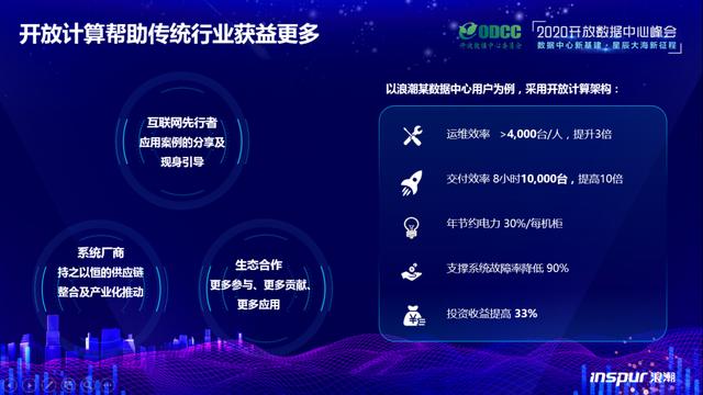 在行业开放数据中心应用方面,浪潮基于开放计算的整体解决方案已在金融、通信等传统行业中规模化应用。