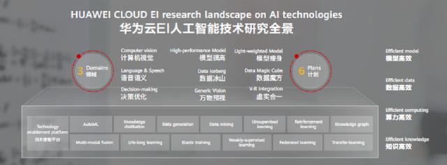 华为云长期扎根AI基础研究,覆盖计算机视觉、语音语义和决策优化三大领域。我们聚焦于模型高效、数据高效、算力高效、知识高效4大方向,提出了六大基础研究计划,包括面向大模型的模型摸高计划、面向小模型的模型瘦身计划、面向多模态学习的数据魔方计划、面向小样本学习的数据冰山计划、面向通用知识抽取的万物预视计划和面向新学习范式的虚实合一计划。