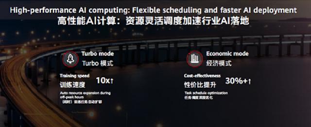 ModelArts提供两种模式,一是Turbo模式,可以充分利用空闲资源加速已有训练作业,训练速度可提升10倍以上,并且不影响模型的收敛精度;二是经济模式,可以通过最大化资源利用率给开发者提供极致的性价比,在大多数典型场景下可以提升性价比30%以上。