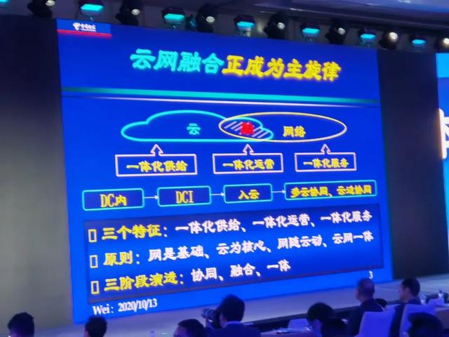 第二阶段是云网融合,云和网在逻辑架构下一体化,在同用组件上越来越靠近,但两者依然还独立。