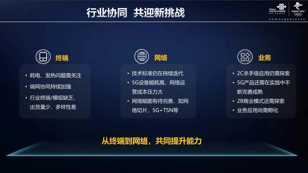 中国联通还端到端创新做强产业基础,2C方案增强打造卓越性能,2B方案增强打造定制专网,网络运营创新打造智能网络。