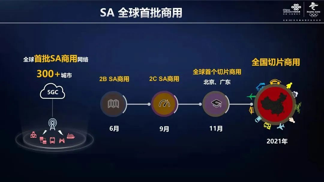 目前,中国联通打造全球首批SA商用网络,覆盖300+城市。到2021年,中国联通计划实现全国5G切片商用。