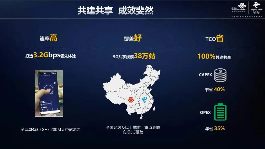 苗守野表示,中国联通和中国电信共建共享实施以来成绩斐然,已经共建5G基站规模达38万站,CAPEX节省40%、OPEX年省35%。