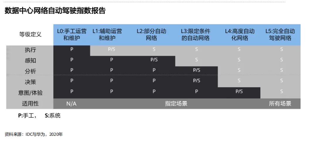 该指数设置了五个DC网络自动驾驶等级,包括无自动化到完全自动化。
