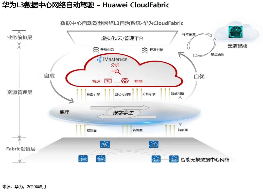 而在实现DC网络自动驾驶的规划建设、开通部署、运维以及变更优化方面,华为提供详细的方案——CloudFabric方案,旨在为客户提供大容量、网络智能化、自动驾驶的现代化DC网络。