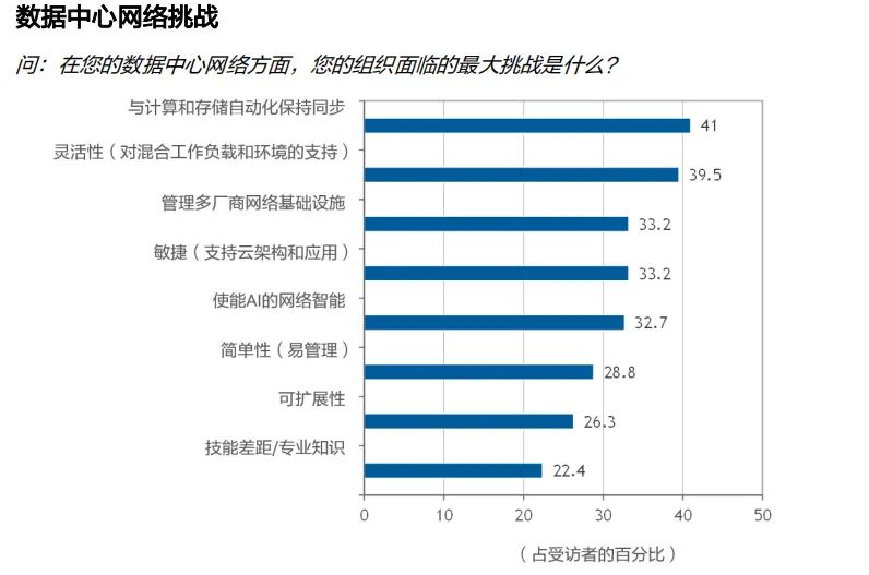 报告指出,DC网络必须在架构和运营上进行调整,不仅需要实现可扩展性和高性能,还要通过在网络的生命周期内实现广泛的自动化,来获得更高的敏捷性和灵活性。