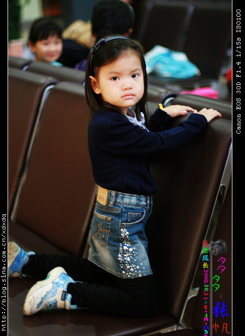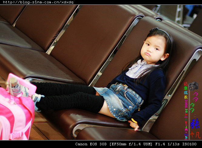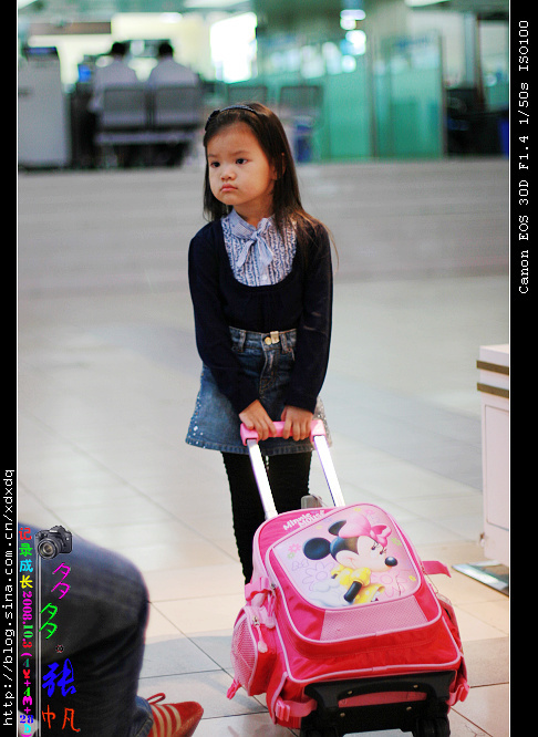 哈哈,看了这个标题别以为真的看到月亮了,因为一直是这么想的,为自己买了便宜的机票找的理由,结果呢,别说月亮了,就连星星和云层都没看到,只有机翼上的灯亮啊亮的。因为是平日睡觉时间的飞机,所以好饿呀,小多原还指望飞机上有点心吃呢,结果就三块牛肉干,其实之前多妈倒是准备了蛮多吃的的,结果全被她爸给拦截了,说哪儿买不到啊,嘿,飞机上就是买不到,济南机场到市区好长时间的路啊,到达宾馆已是半夜了,接着一家三口狼吞虎咽地抢吃方便面。小多的支气管炎没往坏里发展,也不发烧了,头孢、柴桂和美林三个退烧药都带着了却也没浪费,用在她爸身上了。哎,这爷俩啊,还真是同病相怜。今儿的照片是在机场等机的时候拍的,老张小张都极其地不配合,老张说:“看你拍啊拍的,人家还以为你是第一次坐飞机呢”,多妈反抗:“我可没那么想过,那小多每天都在家里,我还每天都拍她在家里的照片呢。”小多也跟着她爸瞎起哄地躲相机,事后想想,估计是身体还没完全恢复,不在状态的缘故吧,原谅她了!