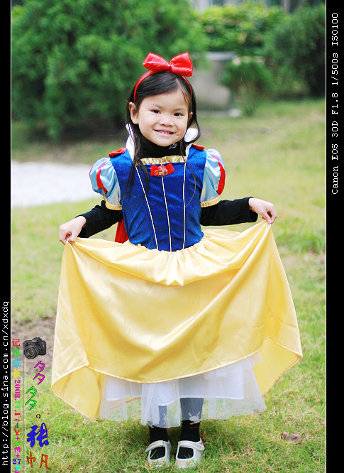 草丛中的小公主!礼服裙还有点大,肩膀还不太撑得起来,明年穿应该会好些。