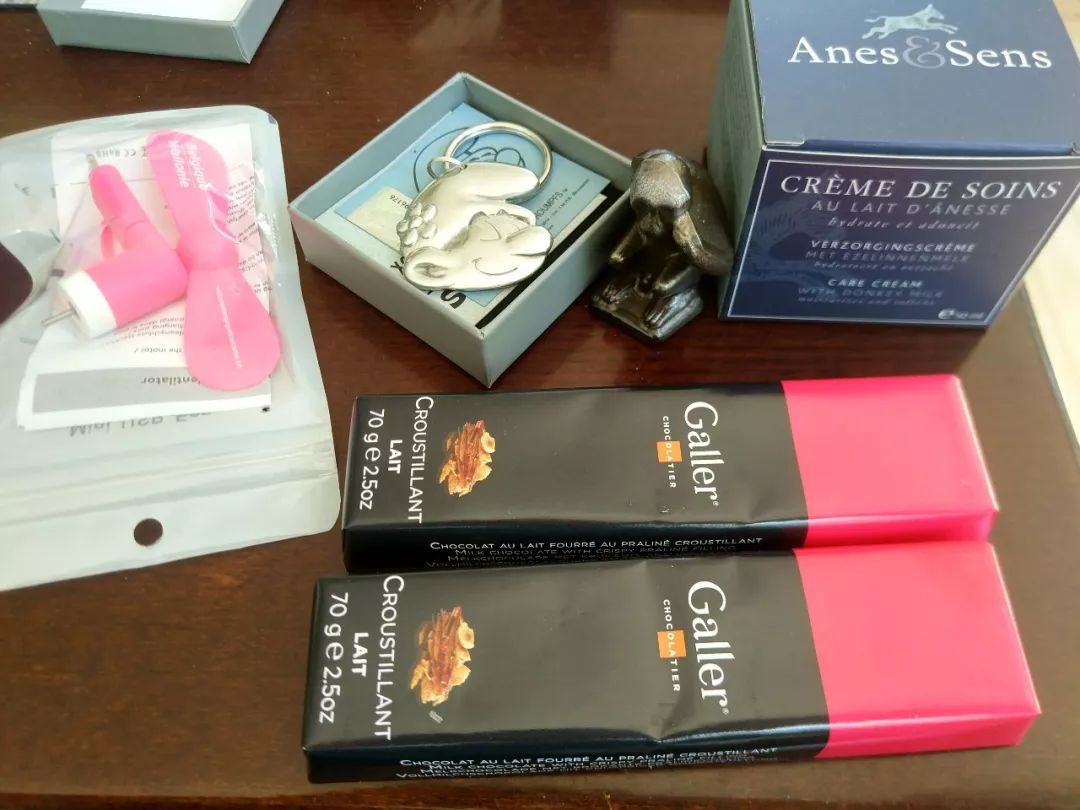 比利时惊喜礼包 包括:比利时 Galler 巧克力;比利时 ANES&SENS 驴奶保湿面霜;蓝精灵钥匙扣;比利时蒙斯城城市形象手办;手机随身迷你风扇;红魔看球神器礼盒