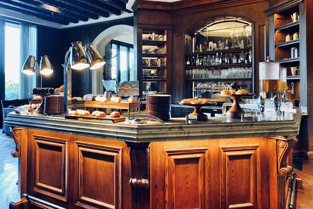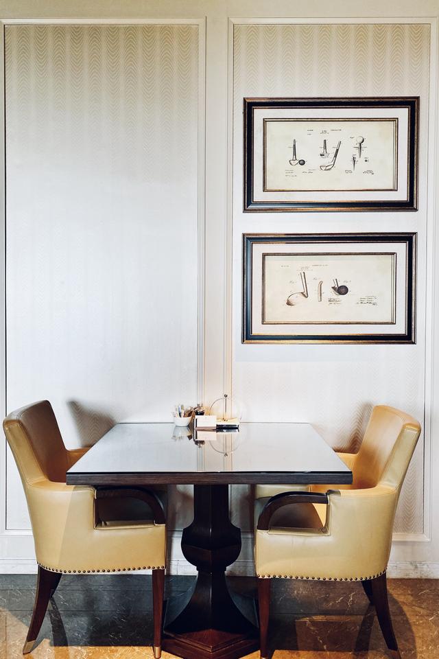 所有房间及功能区都朝向观澜湖高尔夫球场,行政酒廊也不例外,与酒店整体设计高度和谐,低调、从容、内敛中,经典再现英式高尔夫俱乐部。