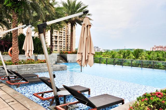 酒店的健身房、儿童娱乐区,以及户外泳池都在这一片区域,在无边泳池游一会儿,静静地呆着,呼吸观澜湖高尔夫球场的清新空气,真的什么都不用想。