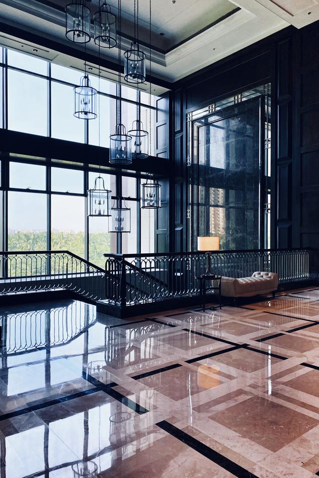 大堂能够让人联想到很多经典英剧的场景,大量石材的应用和超大的挑高又给人一种城堡的现场感,皮革座椅和配饰透出历久的年轮,黑、棕等深色系的应用于内敛中更显沉稳与敦厚,墙上的老照片讲的又是谁的故事,这是一家高尔夫酒店,在海口观澜湖的一片清翠中呼吸着自己的节奏。