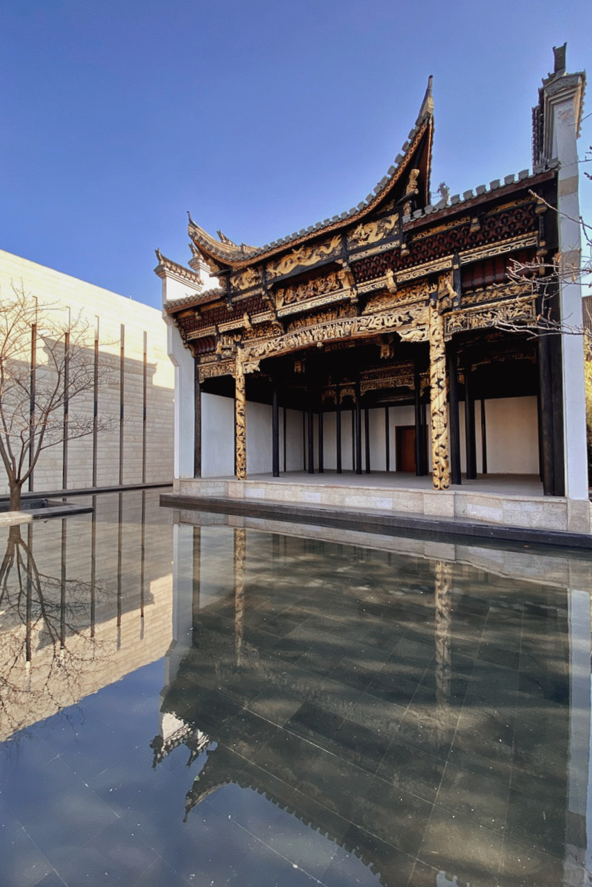 朱家角安麓以数百年历史的明代古建五凤楼(来自安徽)及晚清古戏台为核心,且不说这些老宅架构的收集耗时费力,光修复就花了5年多,幸得完成,35栋别墅式及一众齐全功能区,形成了一个避世净土。