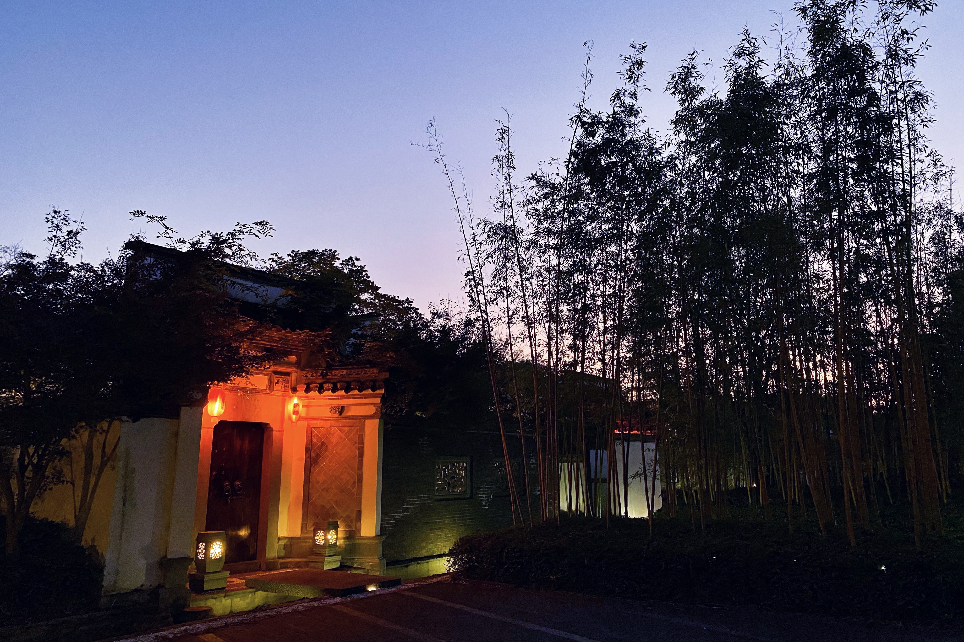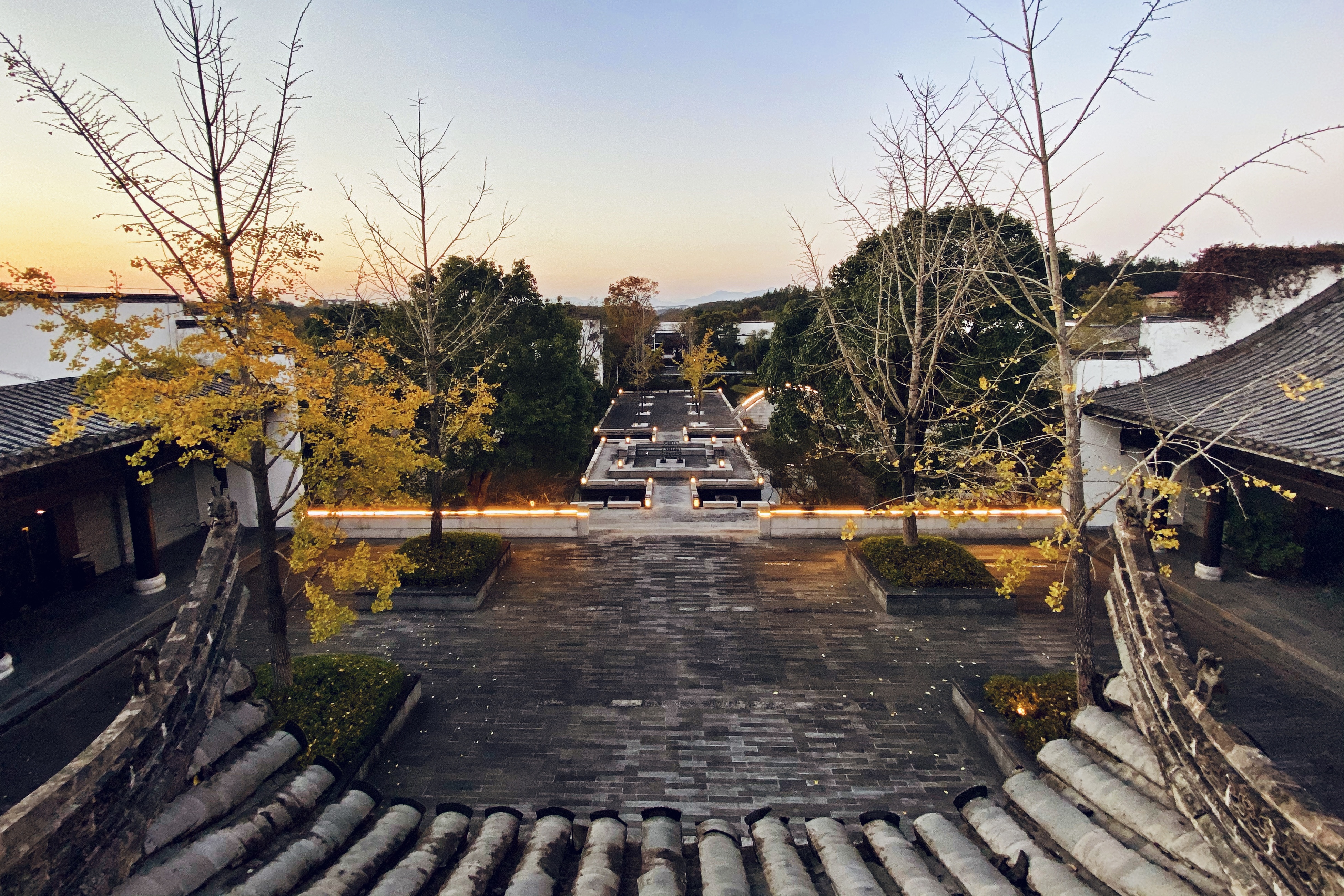 黄山雨润涵月楼的园林由知名专业公司设计,沿中轴线向前,两侧的不同功能阁房对称公布,而小桥与连廊又给这种中式对称添了几分江南的婉约,高处的阁楼恰好落在中轴,更显恢弘大气。