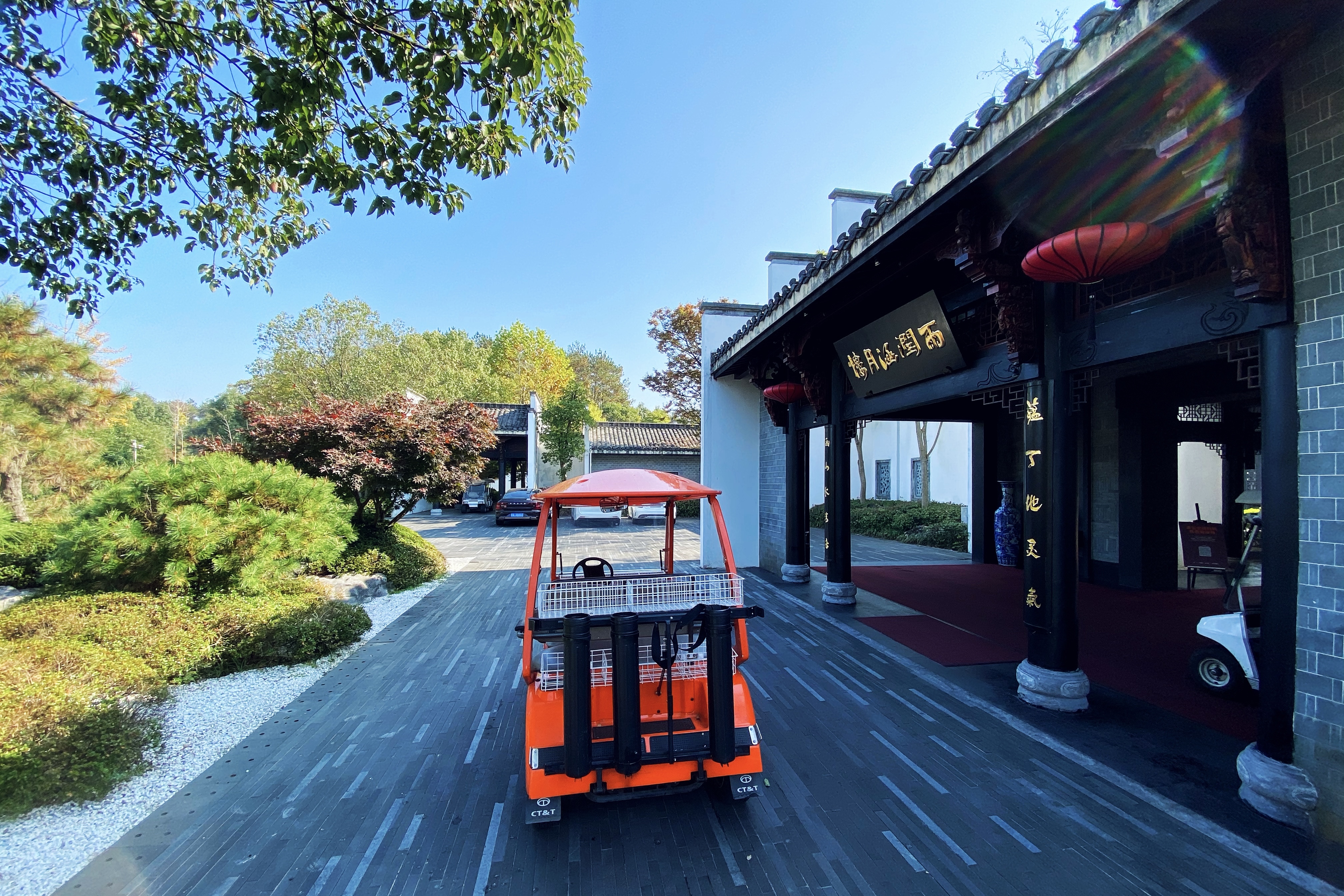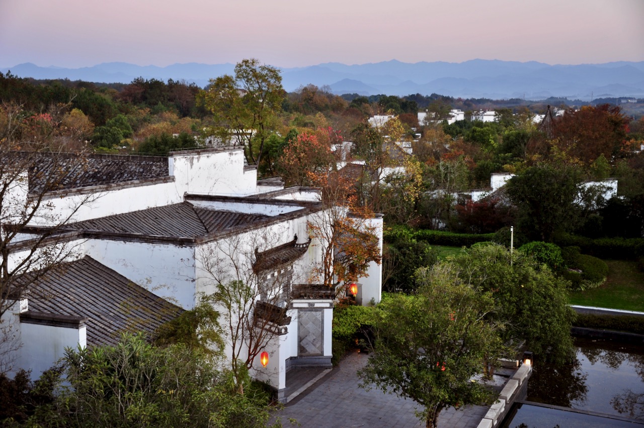 黄山雨润涵月楼酒店在一个高尔夫度假区内,这也是黄山仅有的两个高尔夫球场中最中心的一个,就在屯溪区。驶入高尔夫度假区大门后,秋天的色彩完美艳丽,鸟语清香,球场的延绵翠绿不间断地映入眼帘。
