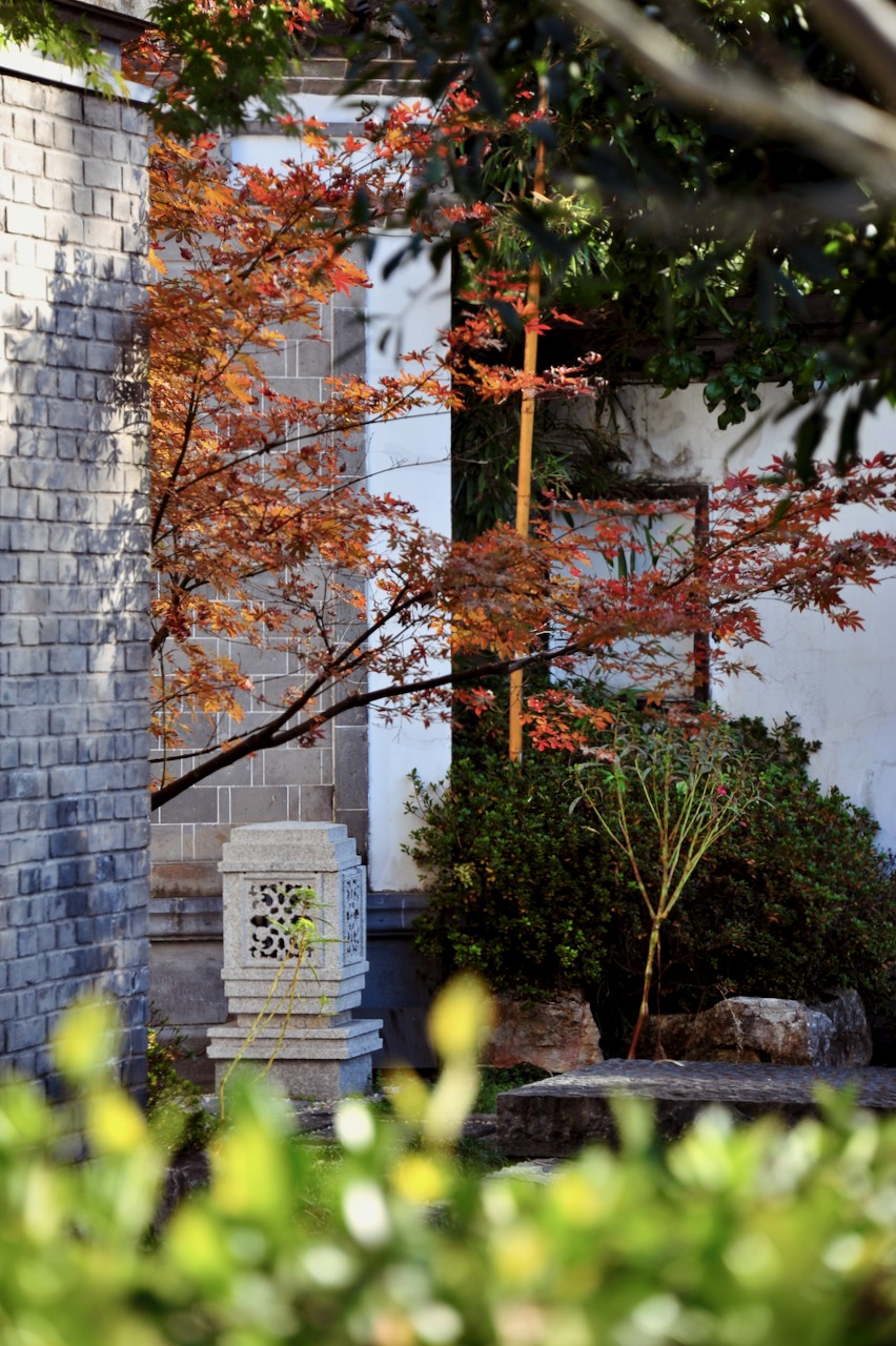 瞧,环绕的清溪、金黄的银杏叶、和盛开的秋海棠,在雨润涵月楼等着你呢。