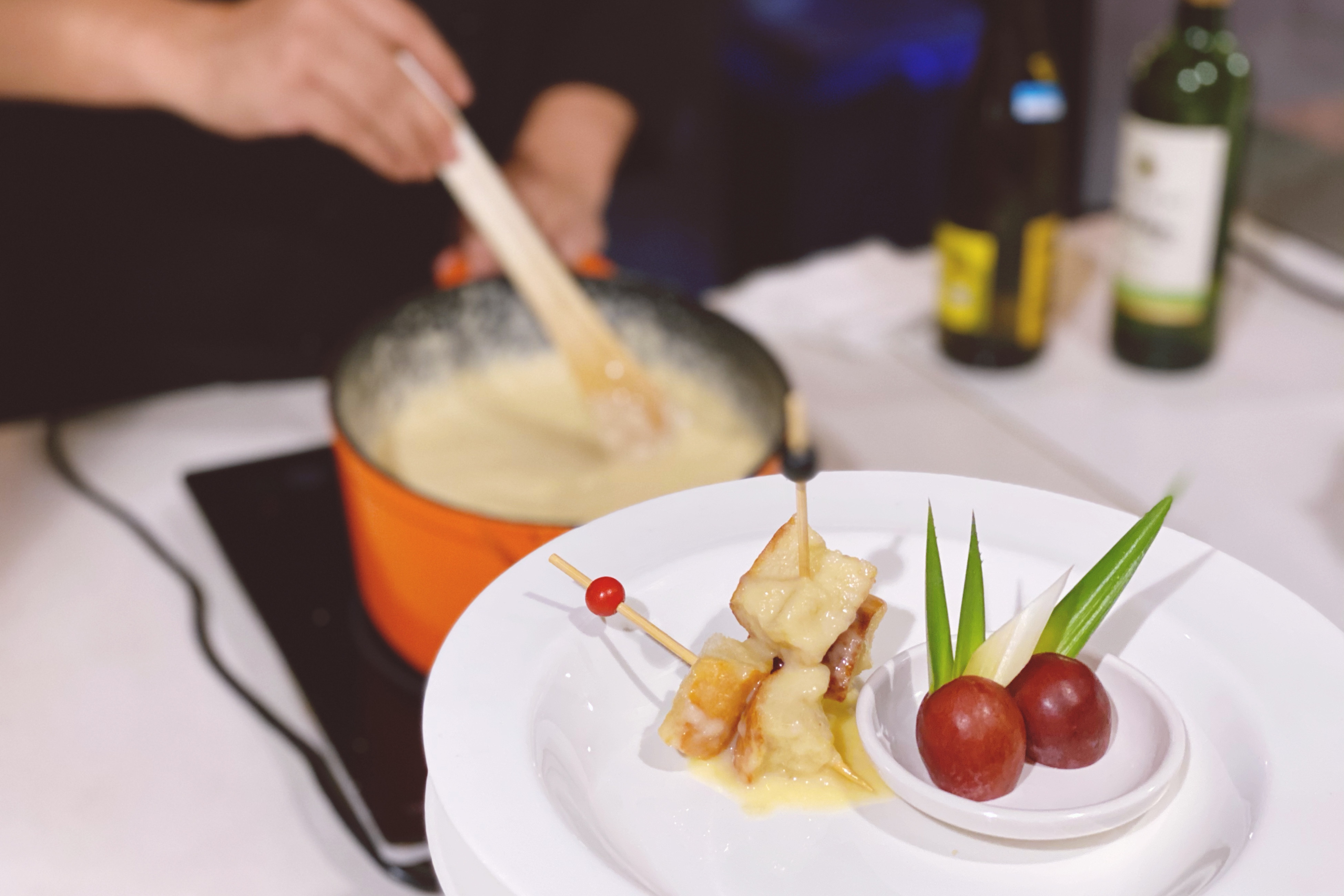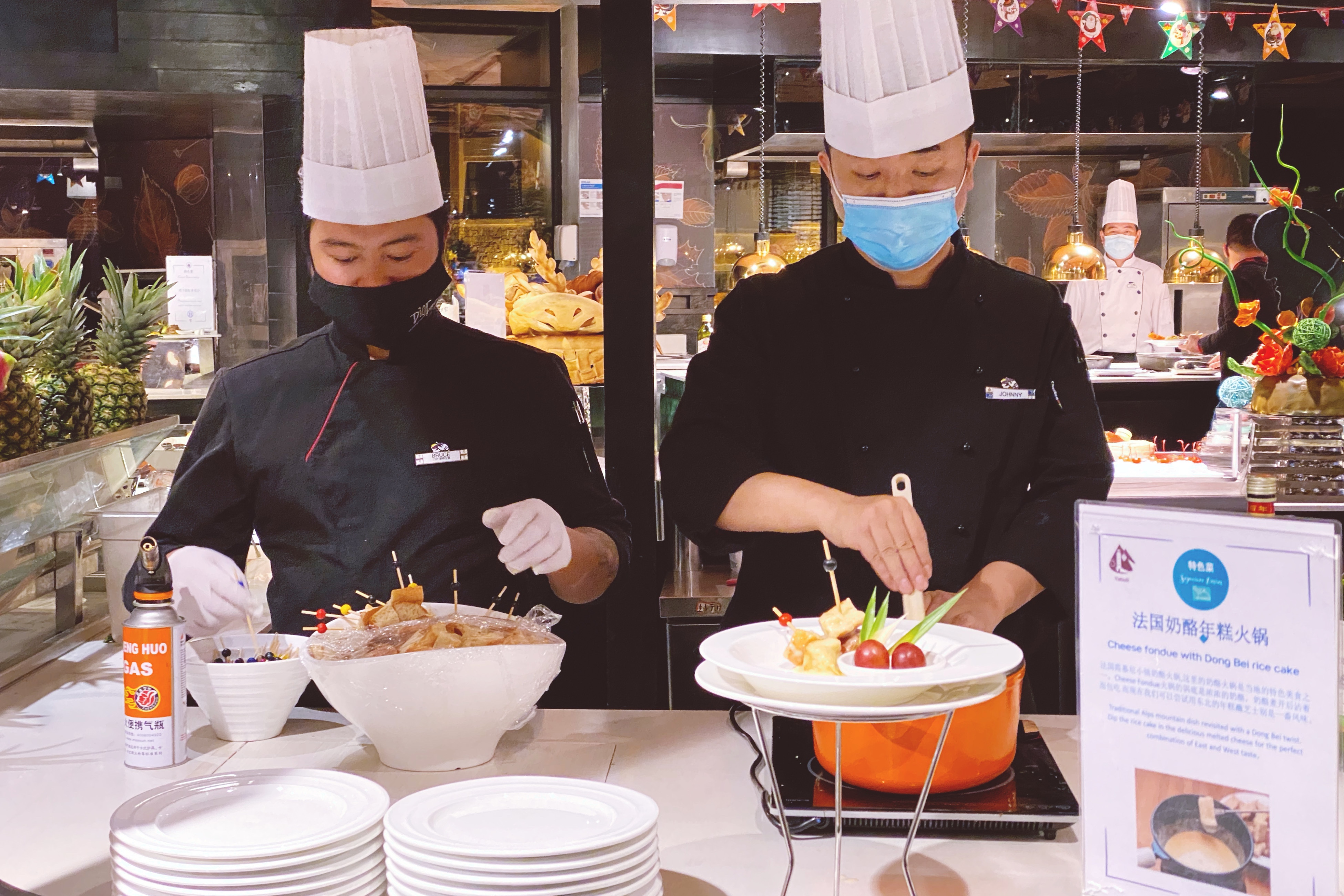 Med亚布力度假村的主餐厅,有正宗东北菜,德莫利炖活鱼、酸菜炖脊骨、葱爆木耳、等等,都太好吃了!关键是还能吃到法式大餐,像鹅肝、法国奶酪火锅、奶酪焗海鲜、等等,整个浪都吃撑啦!