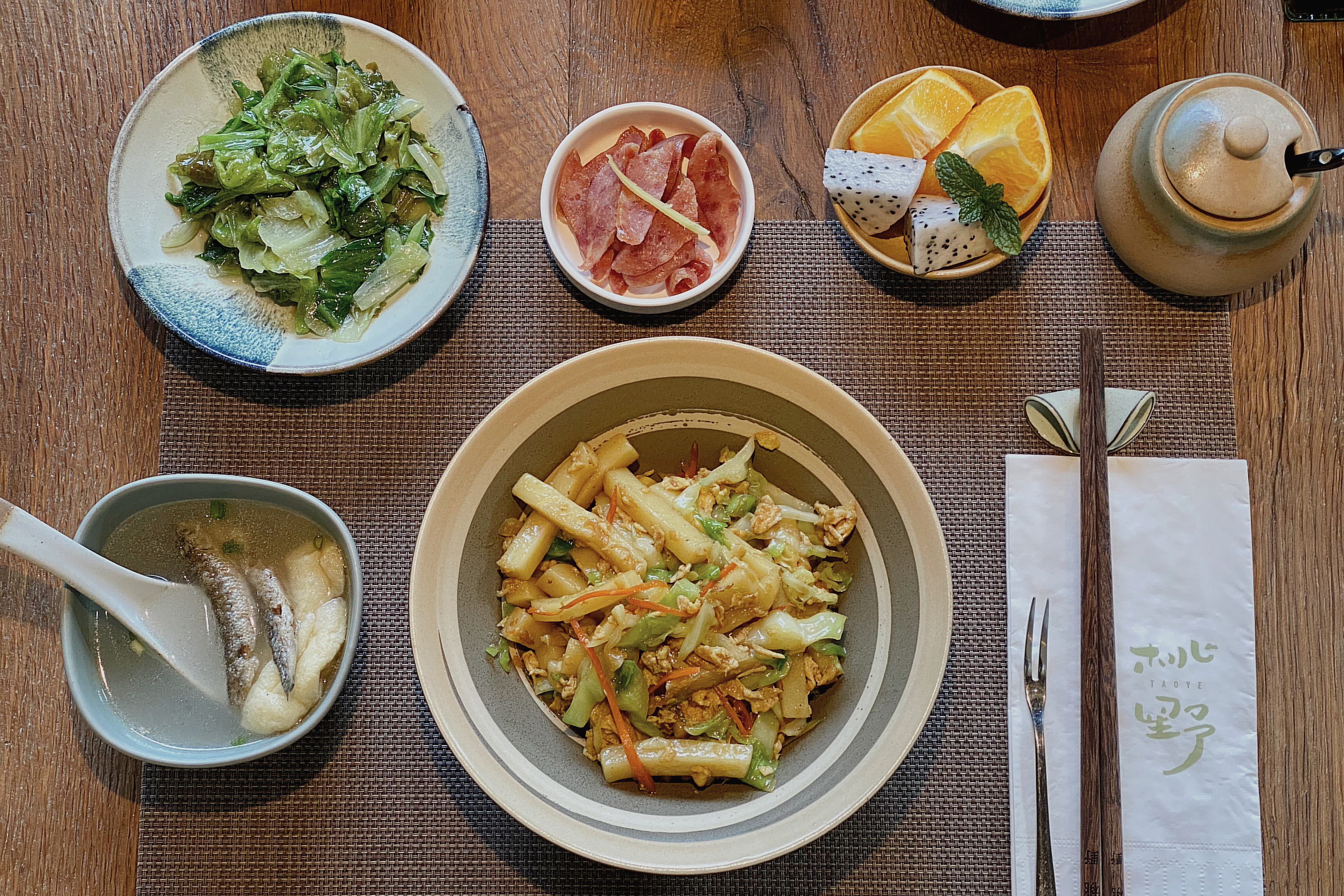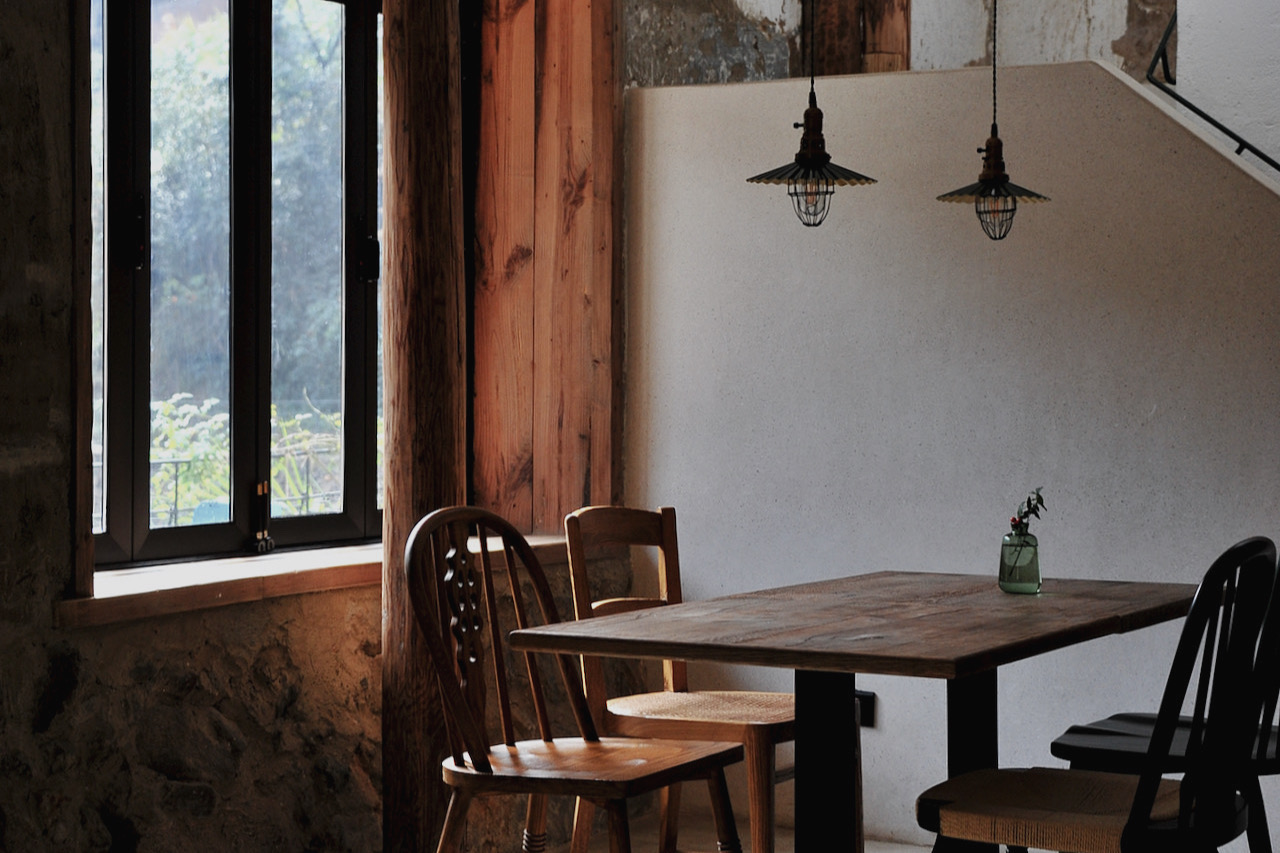 桃餐厅目前仅对桃野客人开放,利用松庄古村里的老房子改造而成,环境品质考究,颜色选择相当考究。桃野的住店客人素质极高,在桃餐厅吃了两天,客人都静悄悄地吃,说话声音很小,连小孩子也不吵闹,好像到了日本一样。