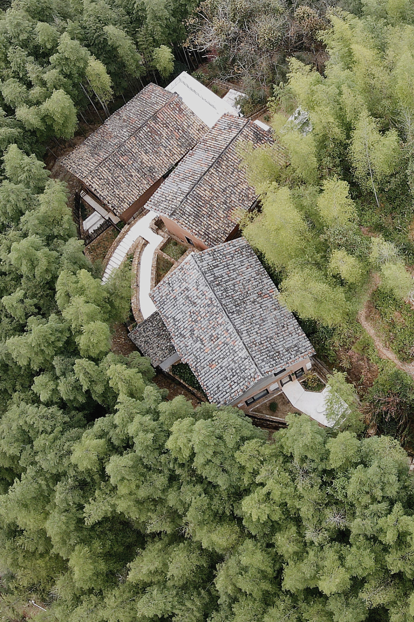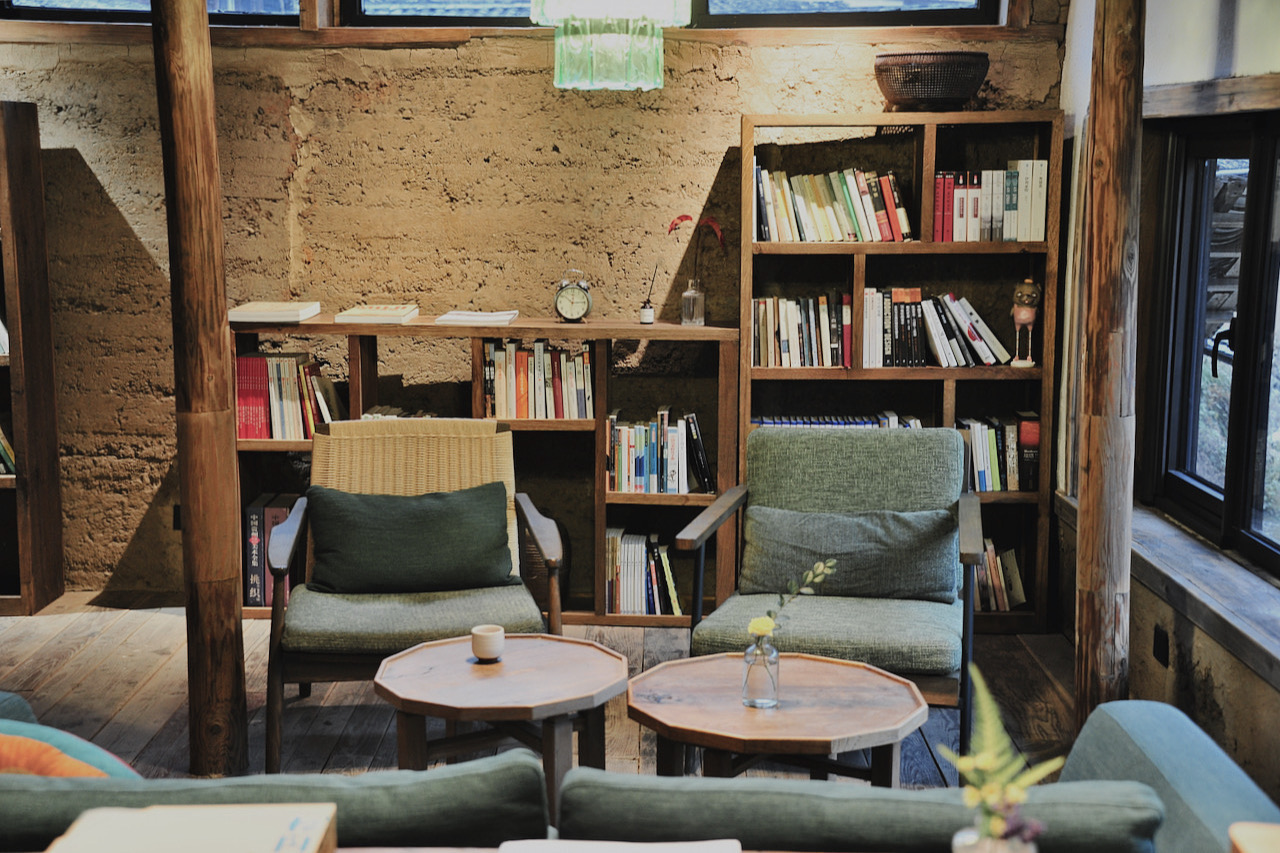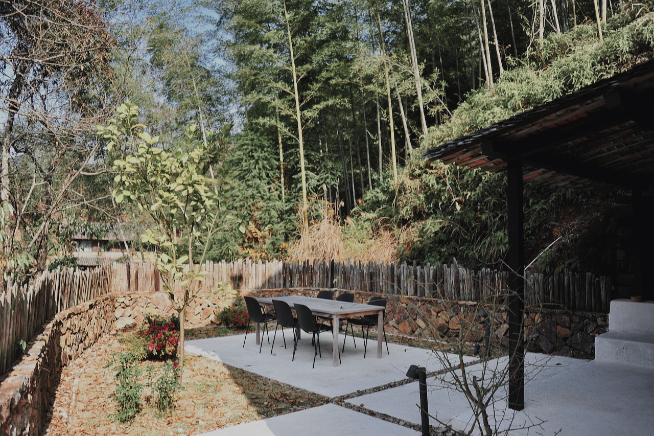 散落在松庄村里的14栋老屋都有各自的名字,都有一首诗词相对应。我住的这栋有两个房间,位于松庄村最高处的竹林里,再上去便是茫茫竹海,故名字取自波兰诗人米沃什的《去森林的远足》,一个房间名“红酒”,一个房间是“礼物”。