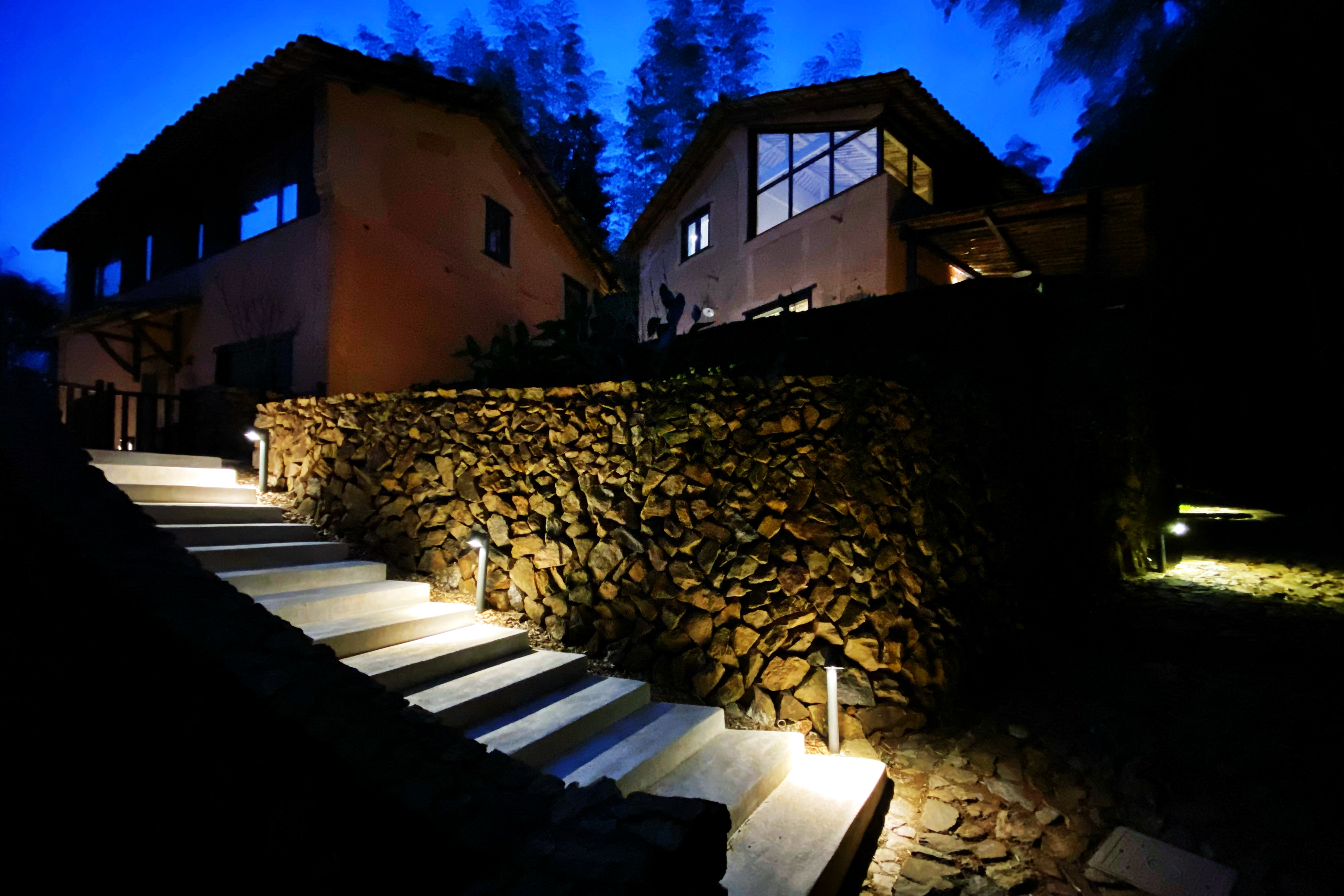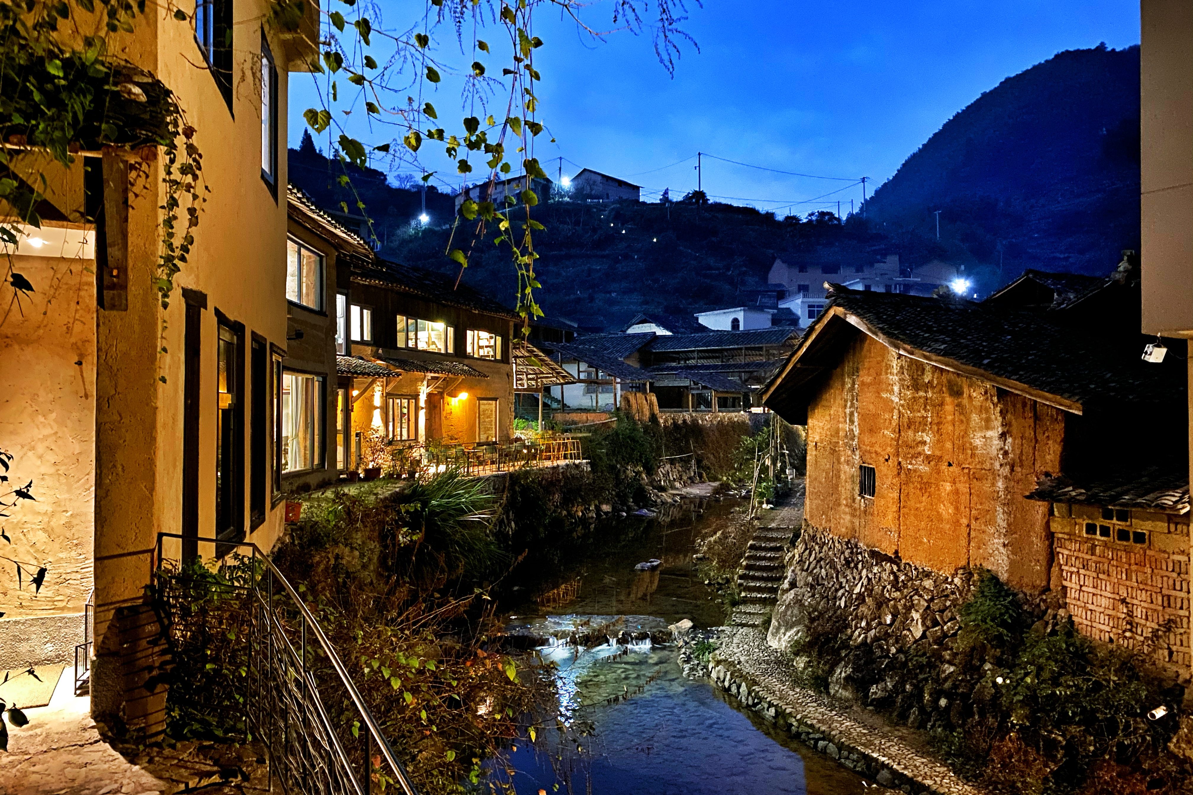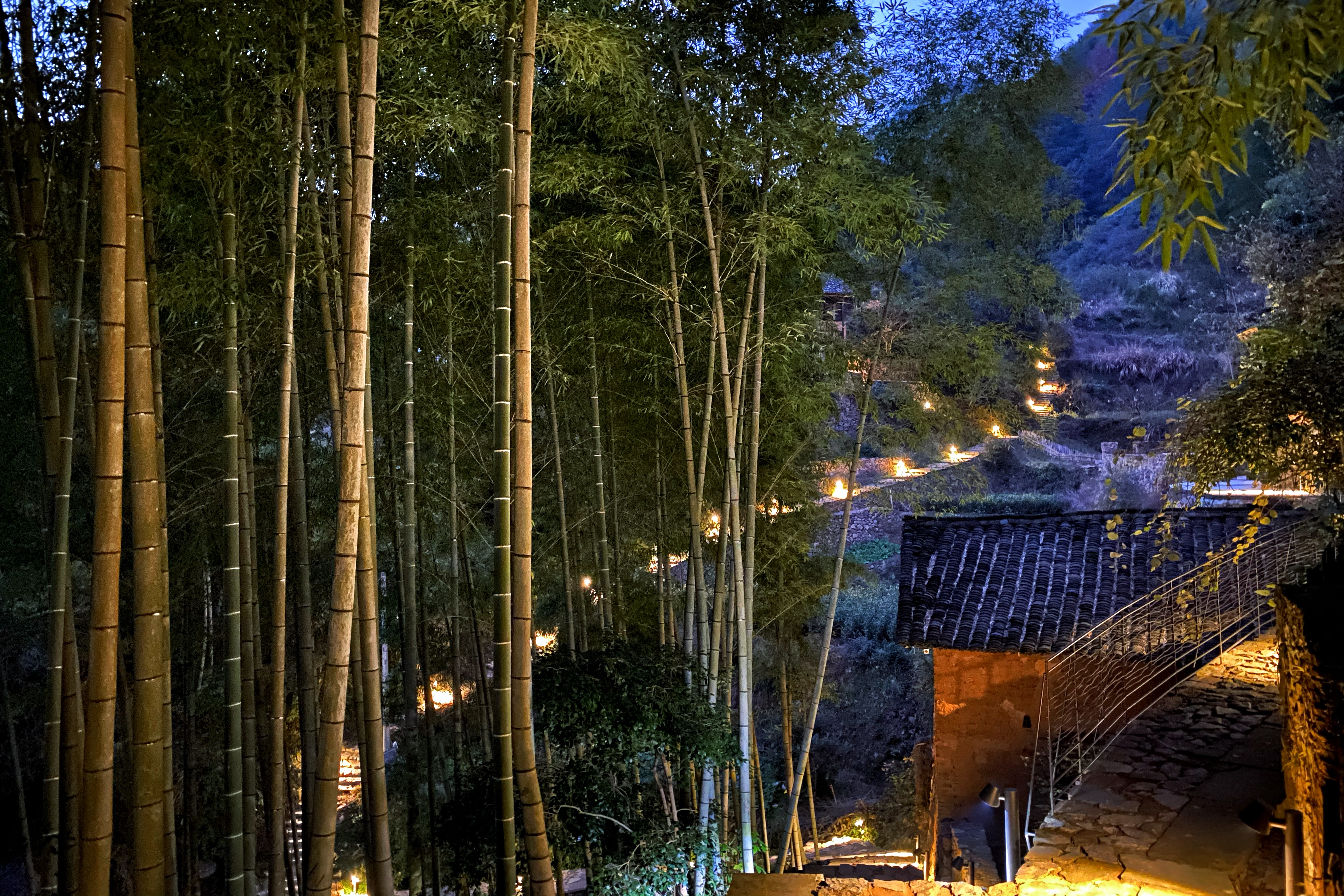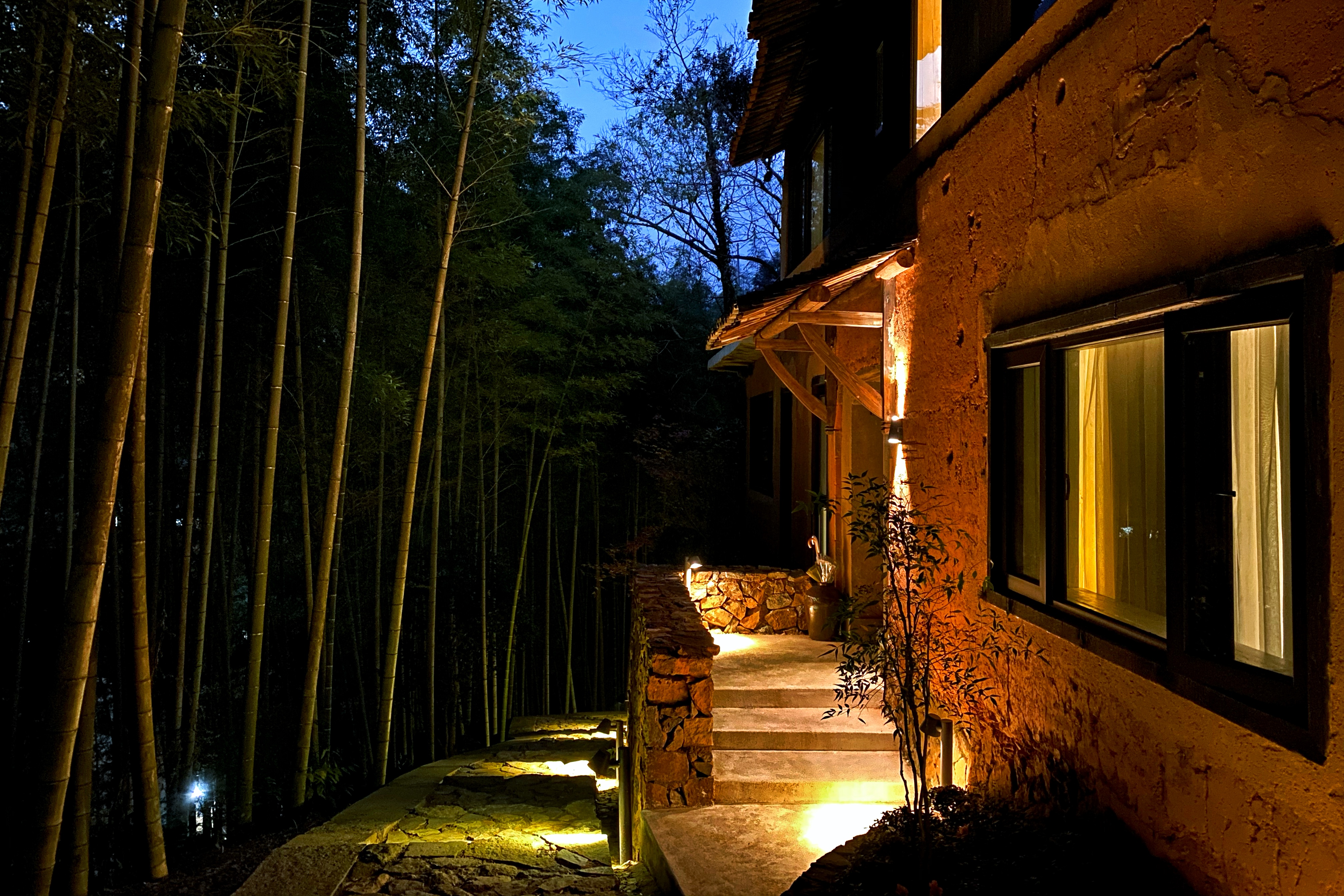 夜来了,拽了一天的鹅们终于精疲力竭,狗们也切换到夜间模式,只有不知倦怠的小溪哗啦啦地流着。桃餐厅吃完饭,便这样沿着青石板路,回竹林里的远足屋,偶有一阵风吹过,竹叶飒飒地响了起来。桃野的夜晚,就是这样。