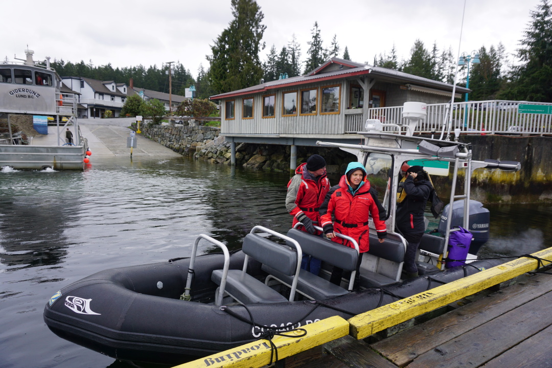 在欧洲人之前,BC省有人类居住已有1500多年,据推测,最早的原住民是从亚洲经白令海峡至阿拉斯加,再到这里。又是一片大浪袭来,撞击在脸上,引来阵阵惊呼,当年的那些移民又是经历了怎样的千辛万苦,方才到达阳光海岸。充气船驶过成片的木材,这些粗壮的木桩被牢牢地系在一起,顺着洋流,沿着岛岸,完成前往码头的使命。人类的命运何尝不是如此。