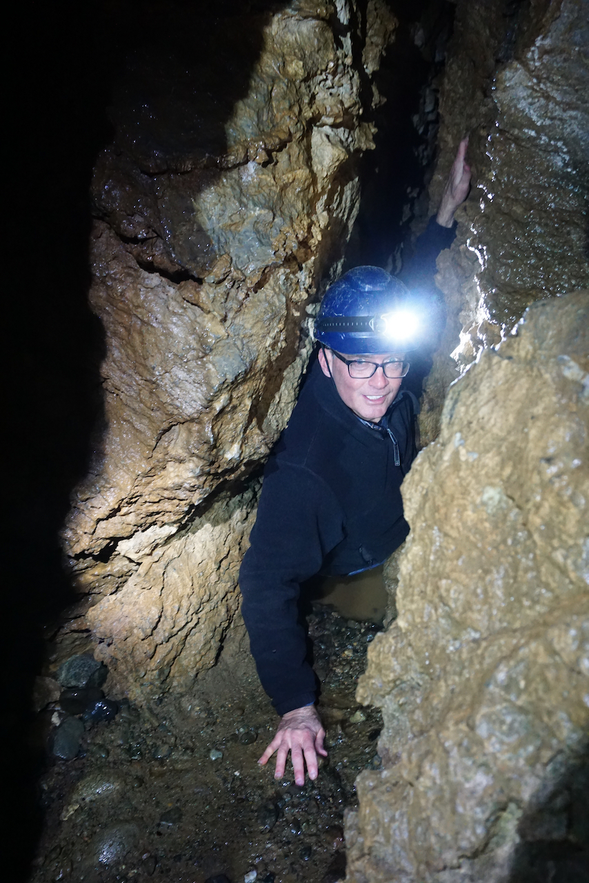 穿过大理石通道,越过水晶洞穴,许多地方需要匍匐前行,手足并用,假如挤不过一线之处,如此身材则要另觅别路。偶遇蝙蝠悬于穴顶,或见蜘蛛结网于隙缝,Richard讲这些均显平常,传说地下河里竟然还有鱼虾,终日黑暗令其眼睛进化到无,听到这些,略感诡异,生命如此生生不息,大自然着实伟大。