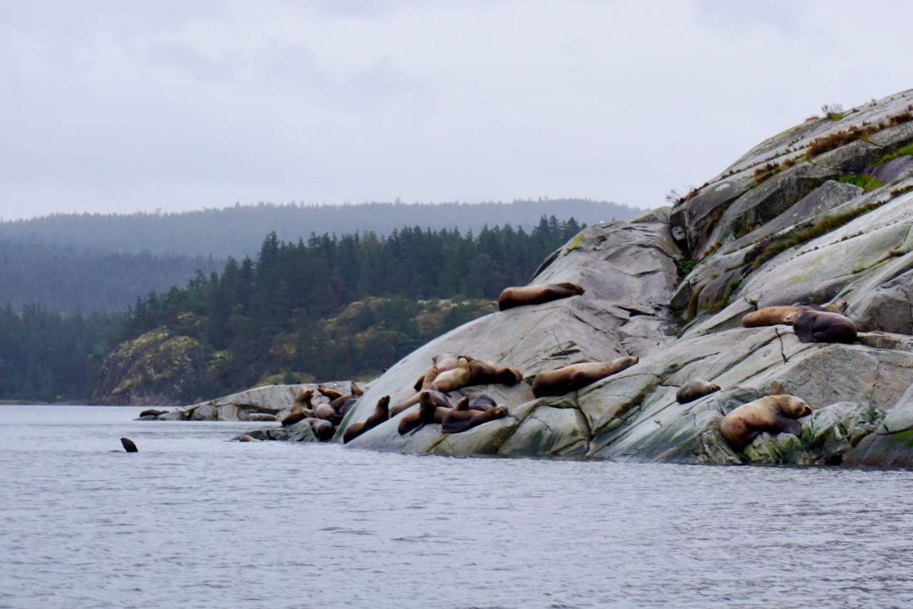 海狮倒是胆子不小,大声地啼叫着,聚集在海中的巨岩上,个数难以数清。浪起时,咸咸的海水扑面而来,俱乐部提供的外套足够御寒、足够防水。Christine出生在多伦多,多年以前,厌倦了寒冷的她,只身来到温润的伦德,一呆便是数载。她的讲解将人们带回加拿大久远的从前,18世纪时,欧洲人最先来到BC省,特别是英国的詹姆斯·库克船长,将关于财富的神奇传回本土,在那之后,毛皮、木材、以及黄金贸易,吸引大量的欧洲人来这里实现自己的富足梦想。