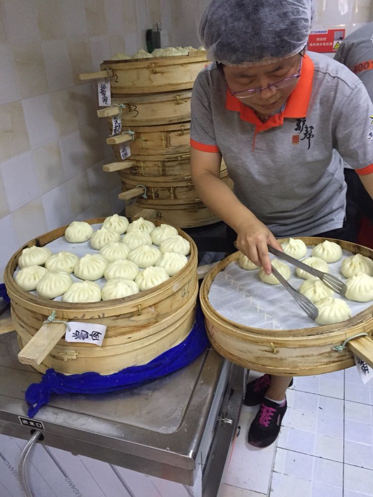 小姑娘说,这包子是由中国烹饪大师储大齐先生研制的。